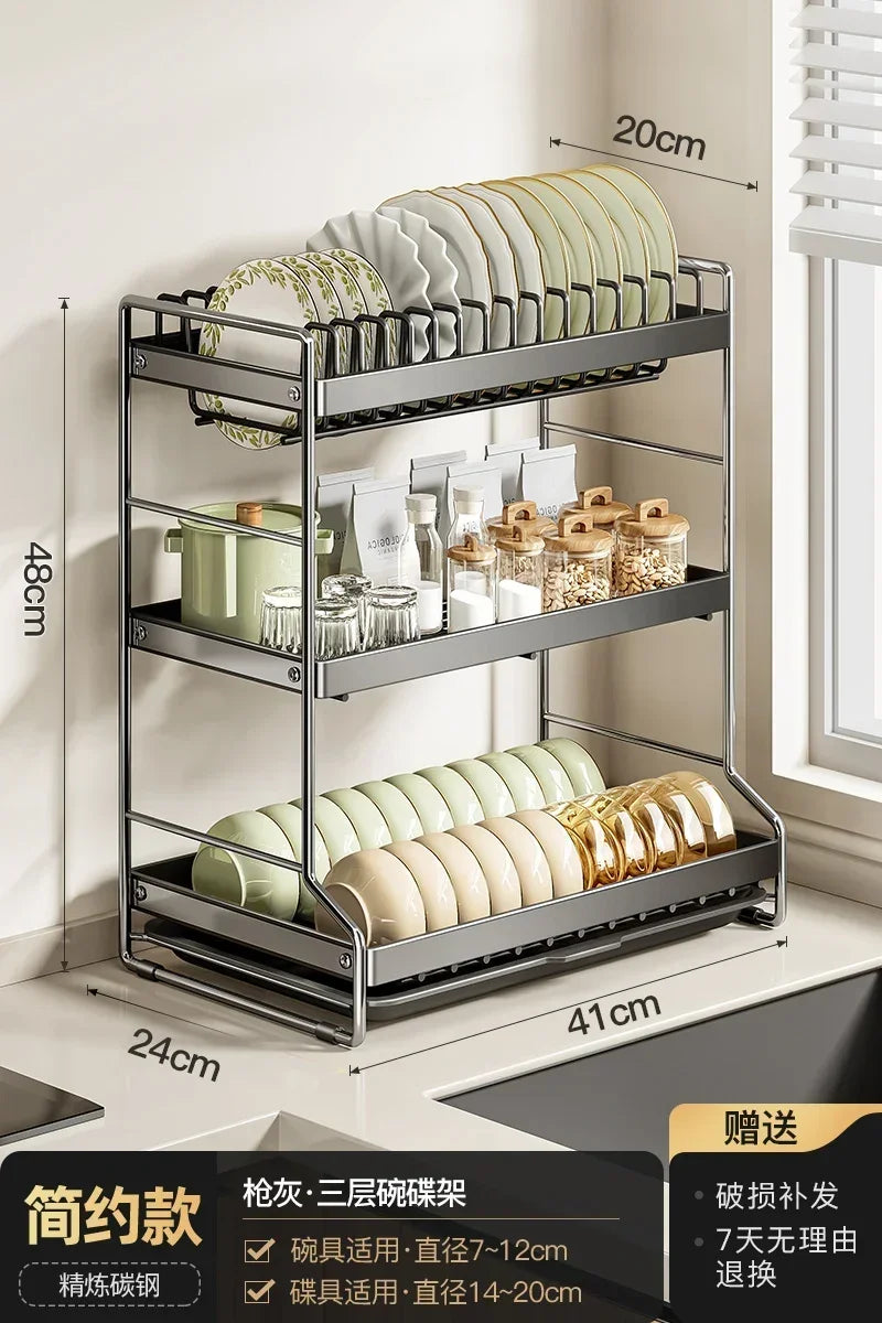 [Solid bold and thickened] Gun ash three-layer 41cm · with water tray + chopstick cartridge + cutting board rack