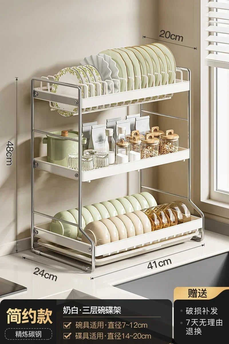 Cream wind bowl storage rack · Double layer